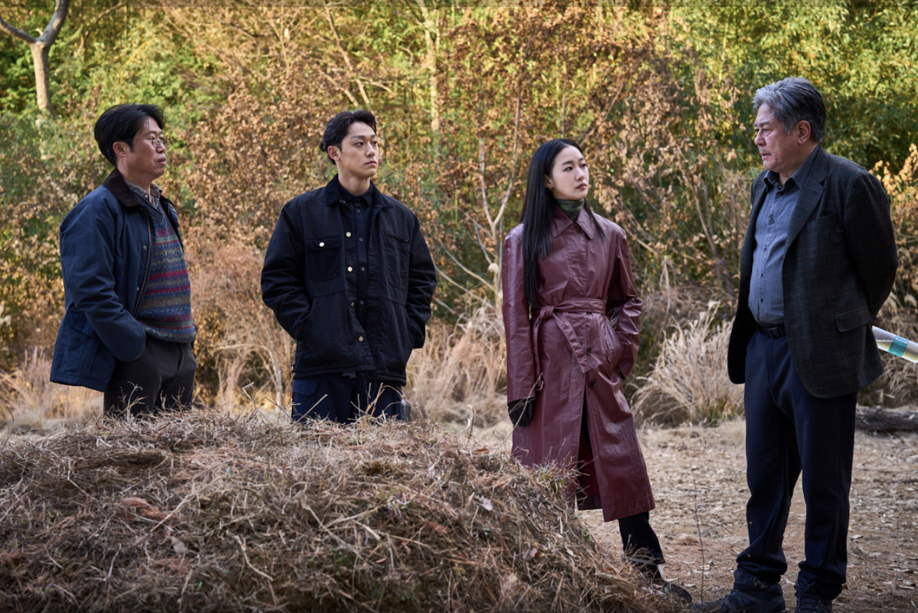 '파묘'의 중심인물은 무당 화림(김고은)과 그녀의 조수 봉길(이도현), 풍수 전문가 상덕(최민식), 장의사 영근(유해진)입니다. 화림(김고은)과 봉길(이도현)은 LA에 거주하는 부자 의뢰인의 집을 방문합니다. 둘은 의뢰인 할아버지의 잘못된 묏자리로 인해 의뢰인의 아들이 고통을 받는다는 것을 알게 됩니다.